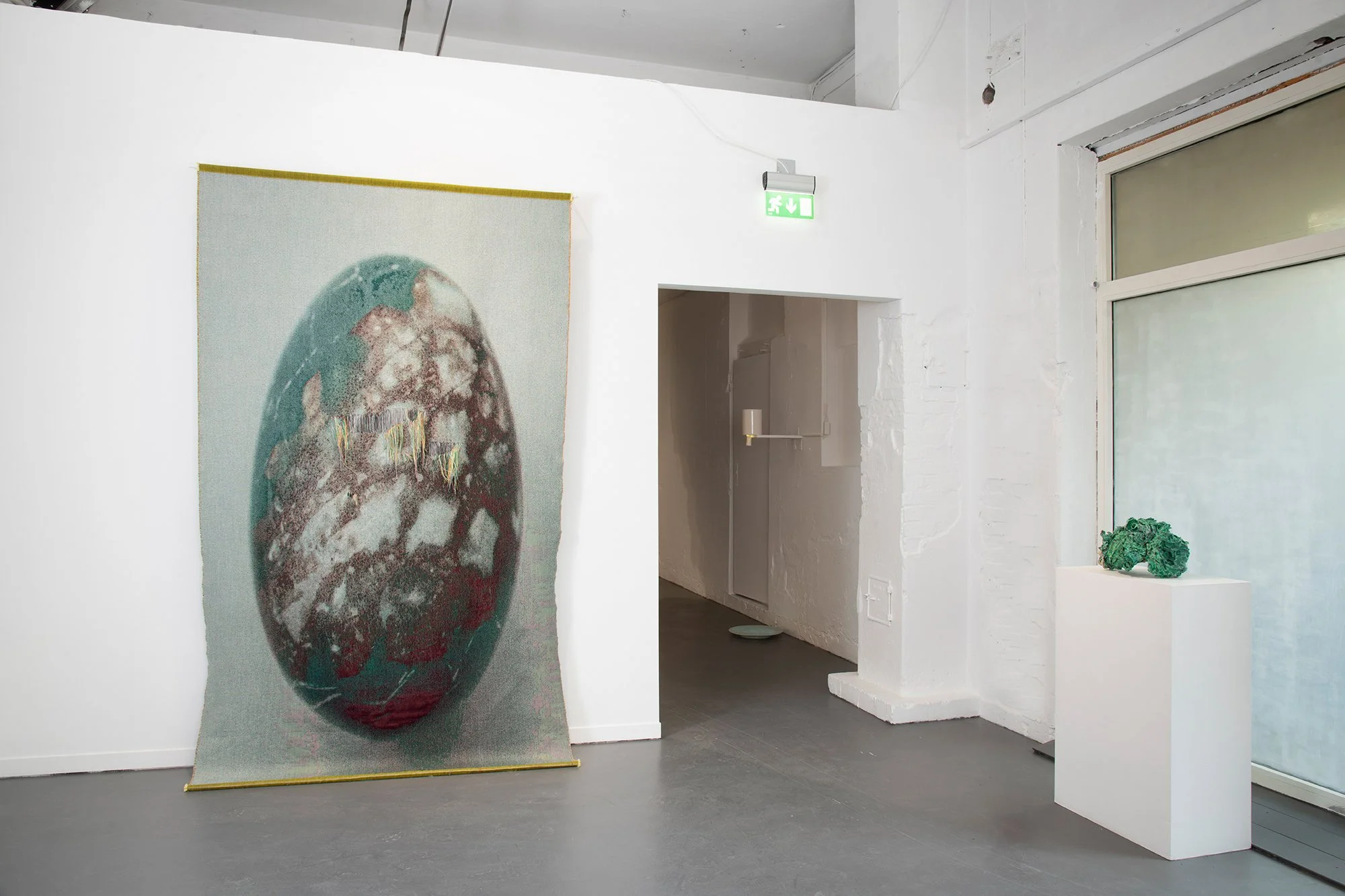 In “Unweaving,” I dismantled machine-woven works by hand, thread by thread, exploring themes of creation and reversal. Inspired by an “egg shape” that symbolizes both construction and the universe, this deconstruction becomes a meditative reflection on progress and its consequences. Ideally, I performed “Unweaving” live in galleries, engaging with audiences as the work transformed. Even if shown as static pieces, these partially unravelled weavings invite contemplation of transformation and time.